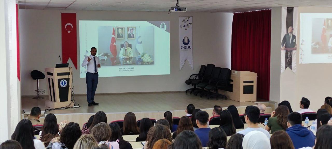 2025-2026 eğitim öğretim yılında yeni kayıt yaptıran öğrencilere 23/09/2025 tarihinde saat 11:00'de Ünye İktisadi ve İdari Bilimler Fakültesi Konferans Salonunda Oryantasyon Eğitimi verildi. Öğrencilerimize öğrenim hayatı boyunca gerekli olacak konularda kapsamlı bir sunum gerçekleştirildi.