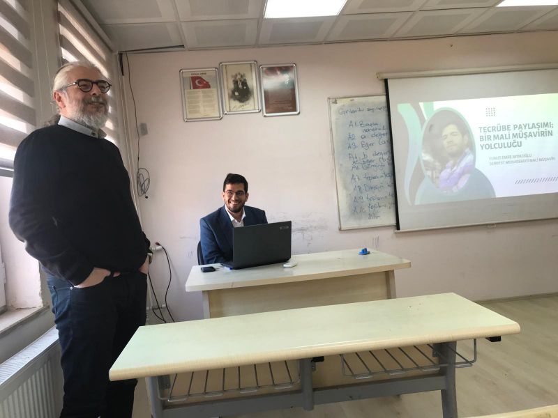 Okulumuz Muhasebe ve Vergi Uygulamaları Programı mezunu SMMM Yunus Emre BIYIKOĞLU mezun öğrenci etkinliği çerçevesinde öğrencilerimizle buluştu. Öğrencilik süresinde dikkat edilmesi gerekenler ve mezuniyet sonrası neler ile karşılaşacakları hakkında bilgi verdi. Kendisine etkinliğimize katıldığı ve öğrencilerimizle bilgilerini paylaştğıı için teşekkür ederiz. Bölüm başkanı Dr. Öğr. Üyesi Erdinç ALP ve bölüm hocamız Öğr. Gör. Alper TİRYAKİ katıldı.